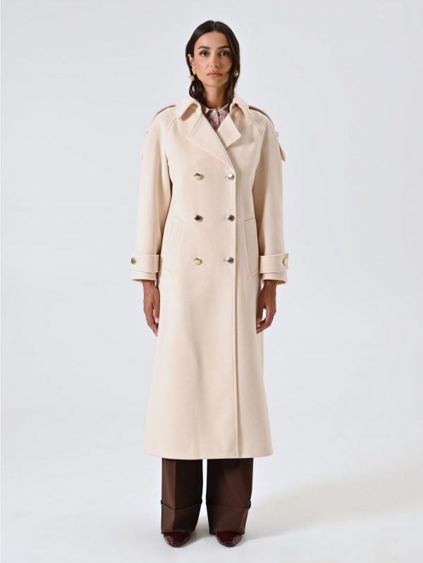 Este abrigo es una pieza outwear espectacular, concebida para envolver con elegancia la silueta de la mujer contemporánea y refinada.