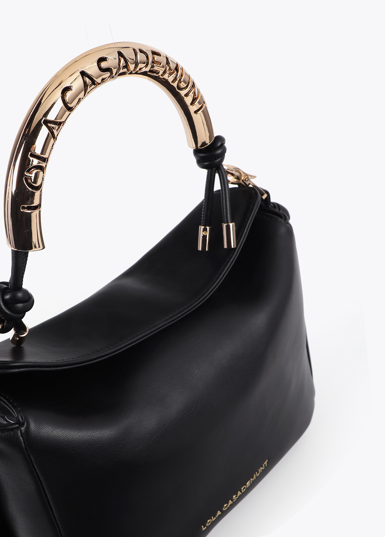 Bandolera de diseño sofisticado con asa metalizada personalizable. Incluye una correa ajustable y detalles trenzados laterales. Interior espacioso forrado en tela fina. Cierre magnético para mayor seguridad. Ideal para llevar con estilo y elegancia.