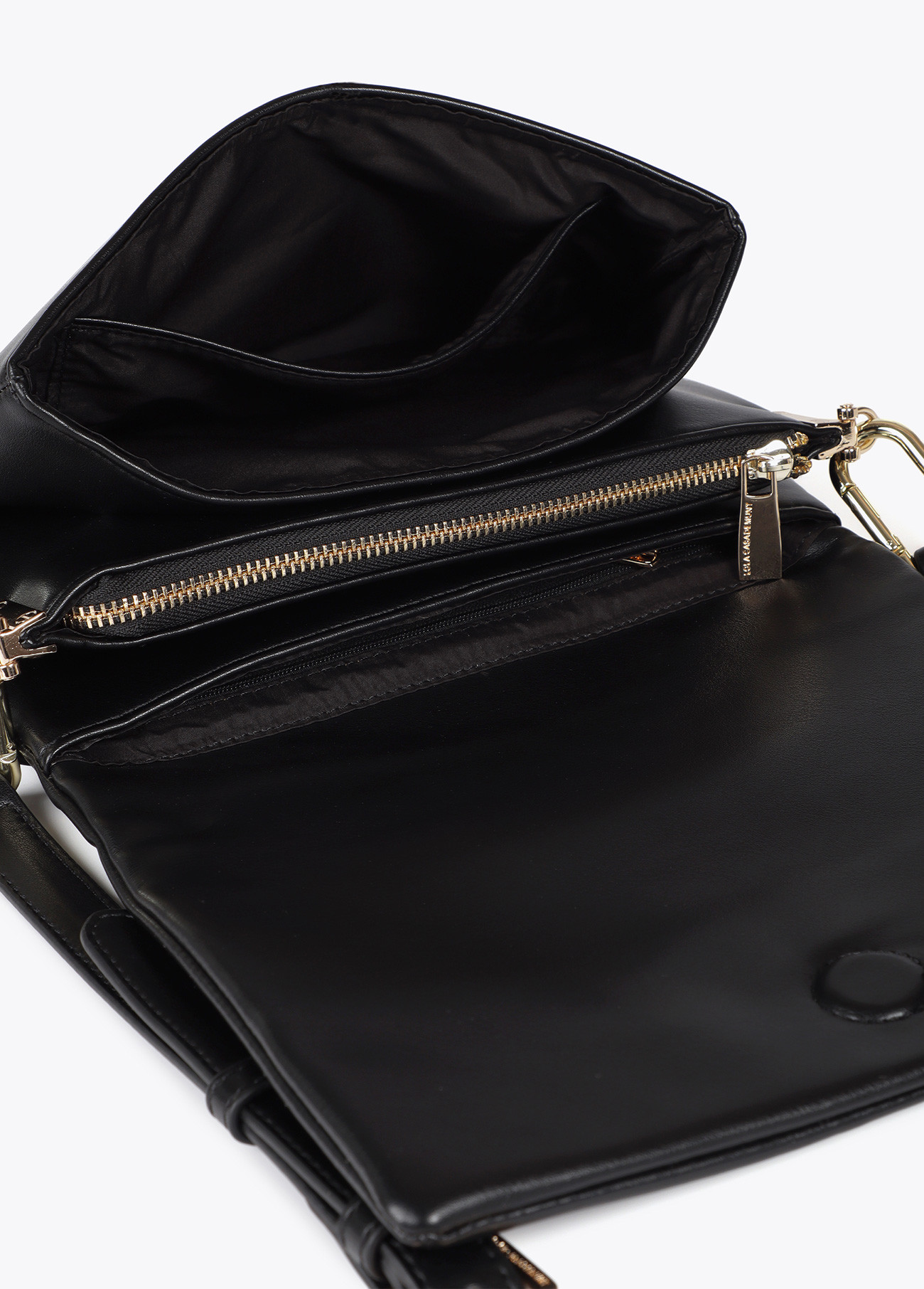 Bandolera con diseño efecto piel, compuesta por tres espaciosos compartimentos. Presenta solapa con cierre magnético y logotipo metálico. Correa ajustable para mayor comodidad. Perfecta para mantener todo organizado.