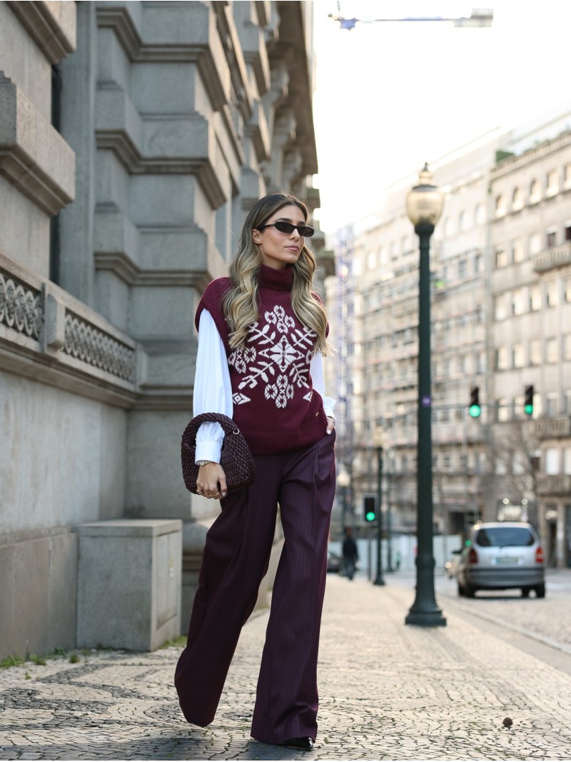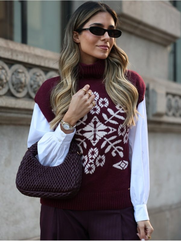 Chaleco con cuello cisne y bordado invernal. Disponible en verde kaki y beige.