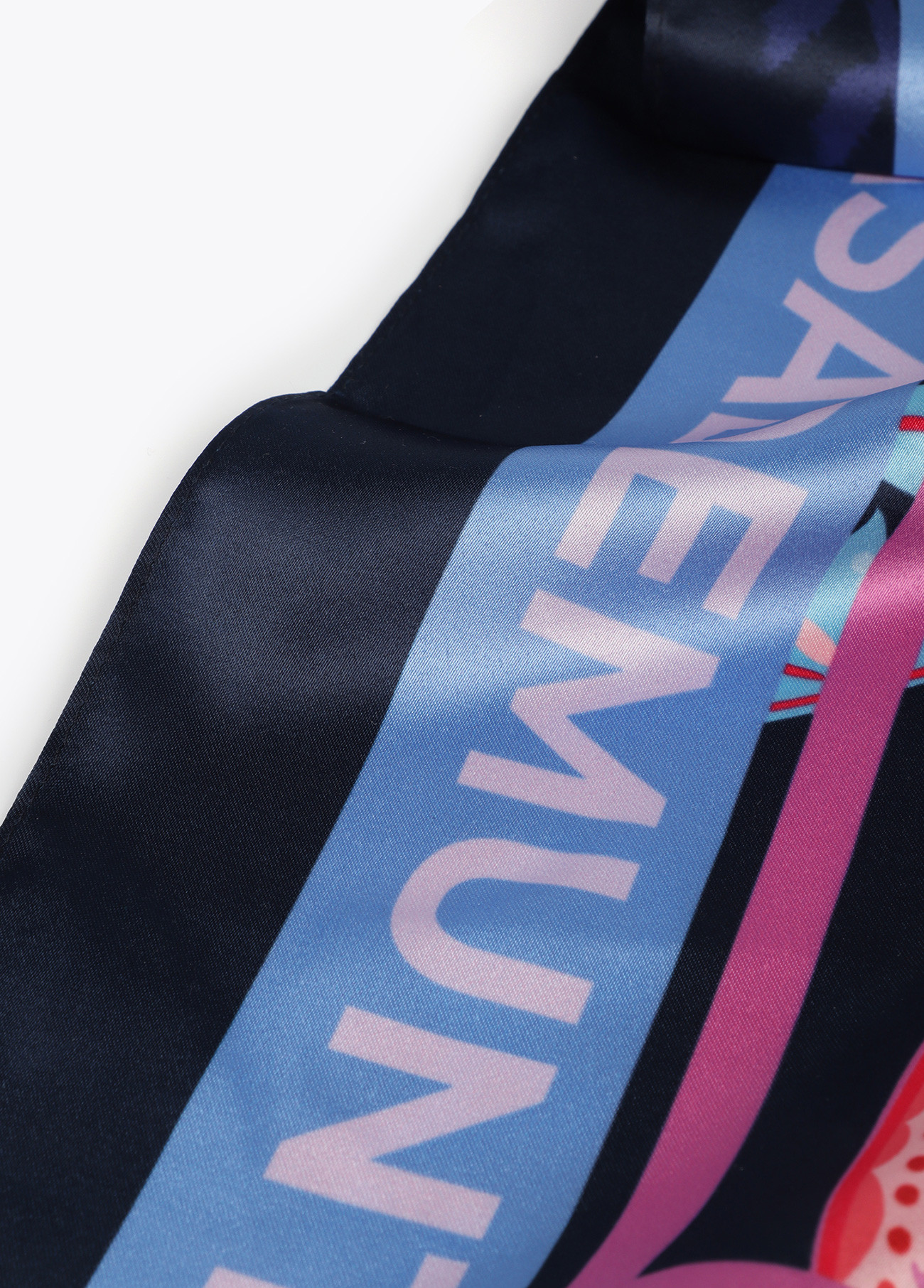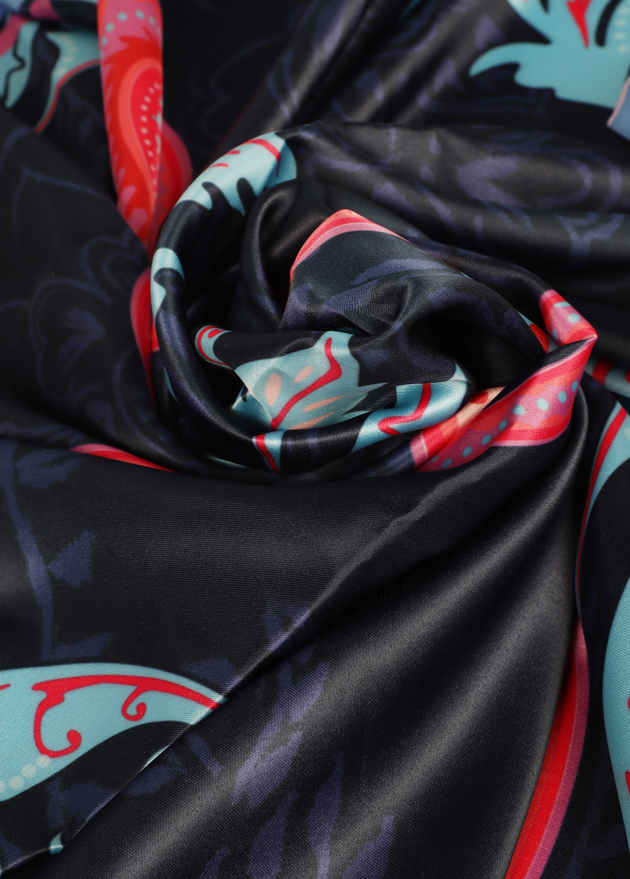 Pañuelo ligero con vibrante estampado paisley en tonos azules y rosas. Confeccionado en suave tejido de poliéster, perfecto para añadir un toque de color a cualquier conjunto. Dimensiones versátiles para múltiples estilos de uso.