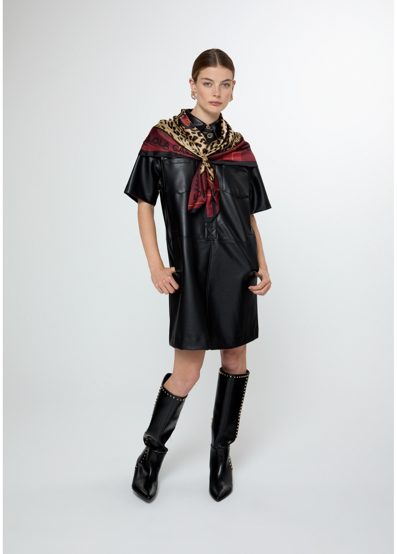 Pañuelo con diseño animal print combinado estilo tartan. Confeccionado en tejido suave y resistente, ideal para dar un toque distintivo y elegante a cualquier conjunto. Logotipo destacado de Lola Casademunt.